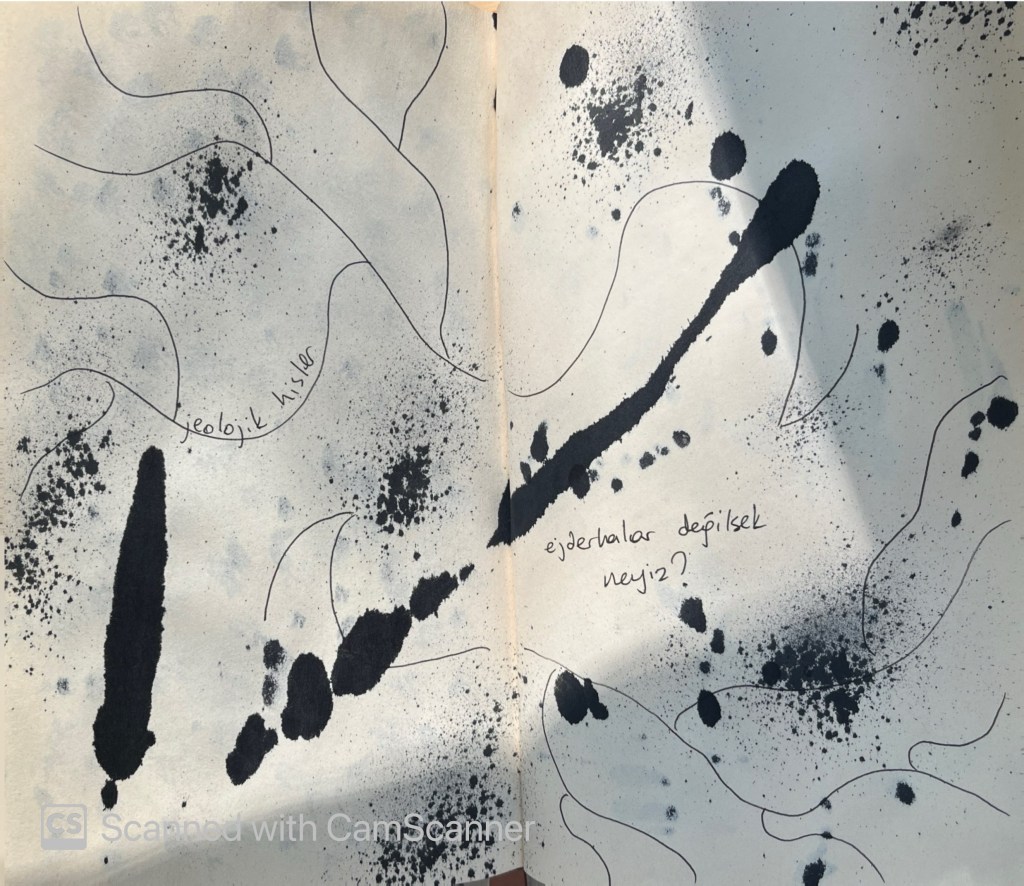 kaçaaaaaaaaan o şey. biliyosun dimi? anladın beni, kaçaaaaaan o şey. mavi desem değil, bi paket petibör desem… belki ejderhanın desenli kanadı. kaçaaaaan o şey. zihin gibi tüy ve topraktan o şey.